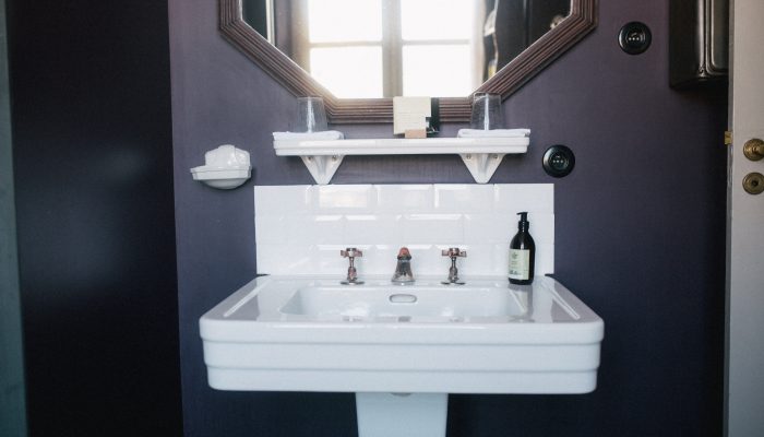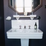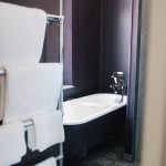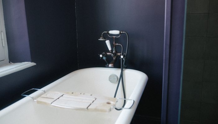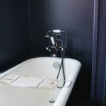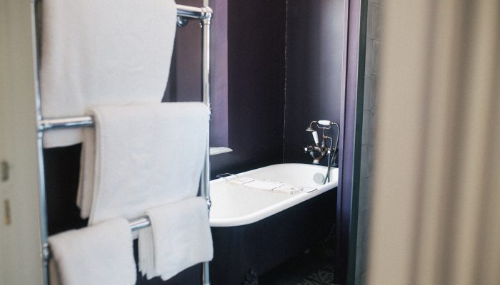 Dans la salle de bain, la baignoire à pieds vous invite, à la lumière du jour, à y passer des heures.