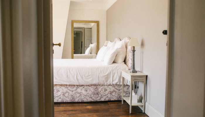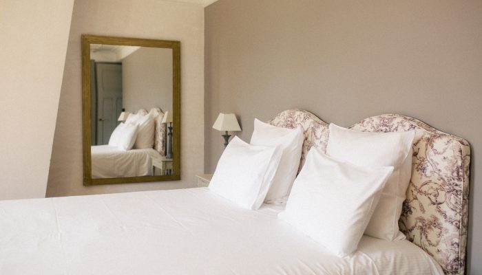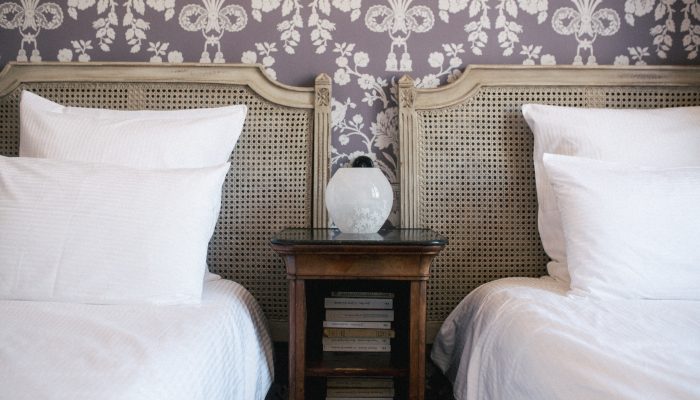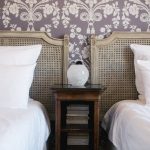 Au deuxième étage de notre maison de maître, la chambre Tilia vous reçoit dans son écrin couleur lilas avec deux chambres, un lit double et deux lits simples.